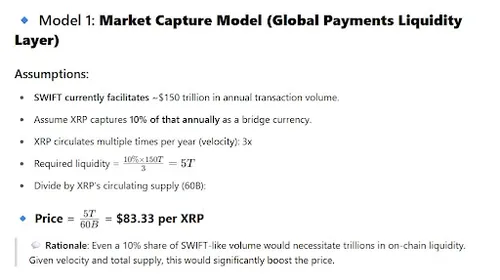 Een optimistisch model gaat ervan uit dat XRP 10% van SWIFT's jaarlijkse settlementvolume van $ 150 biljoen in handen krijgt. Analisten schatten dat de wereld ongeveer $5 biljoen aan XRP nodig zou hebben om liquiditeitsstromen te ondersteunen.