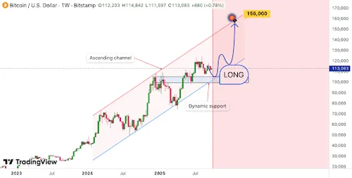 Bitcoin handelt rond de $113.000 en analisten suggereren dat een rally de token naar $150.000 zou kunnen brengen als de bulls kritieke supportzones vasthouden.