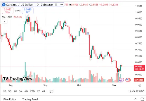 Op het moment van schrijven noteerde Cardano $0,5587, een stijging van 0,37% in de afgelopen 24 uur, wat neerkomt op een marktkapitalisatie van $20,65 miljard met een handelsvolume van $1,28 miljard, een stijging van 6,89%.