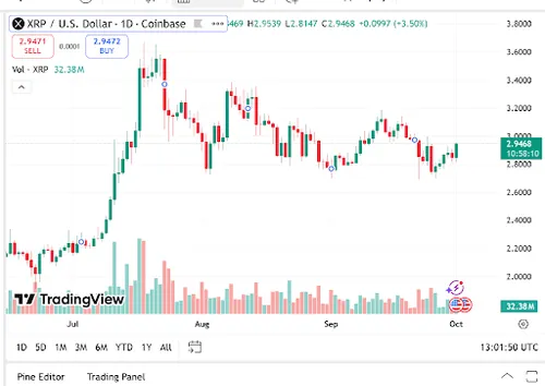 XRP noteert ondertussen rond de $2,94, een stijging van 3,45%, met een marktkapitalisatie van $176,01 miljard en een dagelijkse omzet van $6,13 miljard, een stijging van 20,76%.