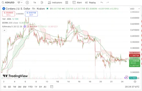 Cardano kampt met hetzelfde probleem, aangezien de prijs van ADA $0,3582 bedraagt, een daling van 0,96 procent, terwijl de marktkapitalisatie van de munt $12,9 miljard is.