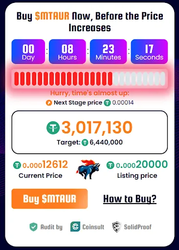 Minotaurus heeft de bredere trends op de cryptomarkt getrotseerd en de afgelopen maanden momentum opgebouwd. De tokenprijs is gestegen van ongeveer 0,00004 USDT naar circa 0,00012612 USDT naarmate het marktsentiment verbeterde – een stijging van meer dan 3x.