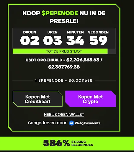 Pepenode’s $2,2 miljoen sinds september bewijst dat er honger is naar opkomende crypto met échte functionaliteit. Het team bouwt een virtueel “Mine-to-Earn” ecosysteem dat het oude mining model democratiseert.