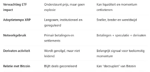 Het centrale vraagstuk blijft: wat gaat Ripple doen in 2026? De uitkomst zal volgens beide analyses afhangen van het samenspel van ETF-instromen, institutionele adoptie, derivatenactiviteit en bredere marktsentimenten.
