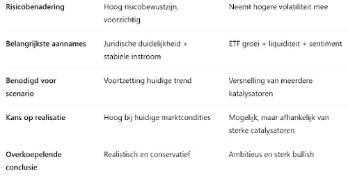 Het houdt rekening met ETF-instromen, maar veronderstelt ook dat marktliquiditeit, adoptiesnelheid en macro-economische condities gematigd blijven.