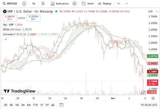 Ripple's XRP, met een waarde van $2,20, is met 7,04% gedaald, hoewel de waardering van $132,75 miljard en de stijging van 44,03% in handelsvolume tot $7,88 miljard de aanhoudende interesse van beleggers benadrukken.