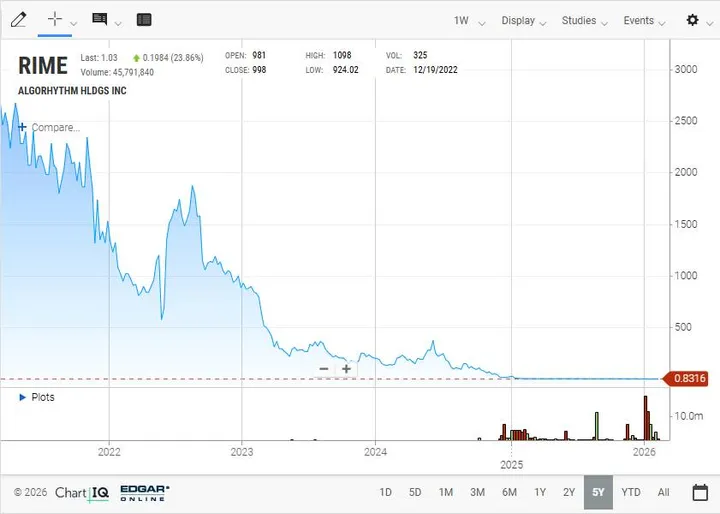Algorhythm Holdings (RIME), een klein bedrijf dat vroeger karaoke-apparatuur verkocht en nu met AI-logistiek komt.