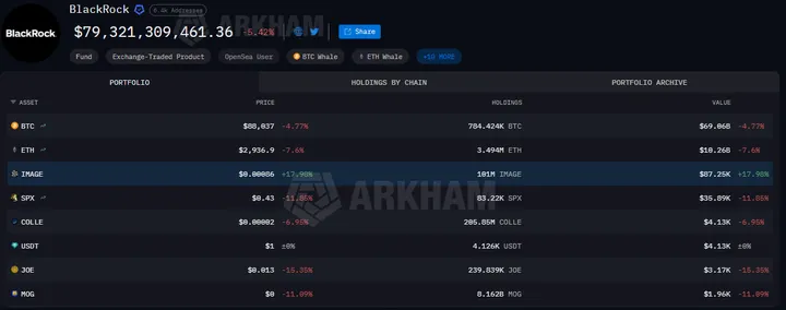 BlackRock's totale crypto-portfolio zit rond de $79–$80 miljard, maar dat gaat bijna volledig naar Bitcoin en Ethereum: