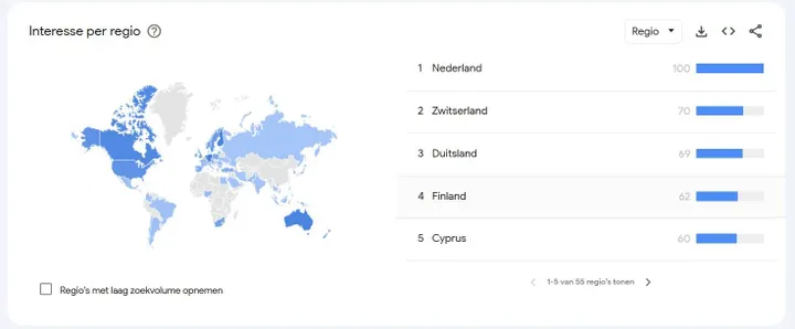 Het is tevens opvallend dat het aantal vooral in Nederland en Zwitserland flink gestegen zijn. Zoals in de onderstaande afbeelding te zien is, is de populariteit van de munt in de afgelopen dagen flink toegenomen.